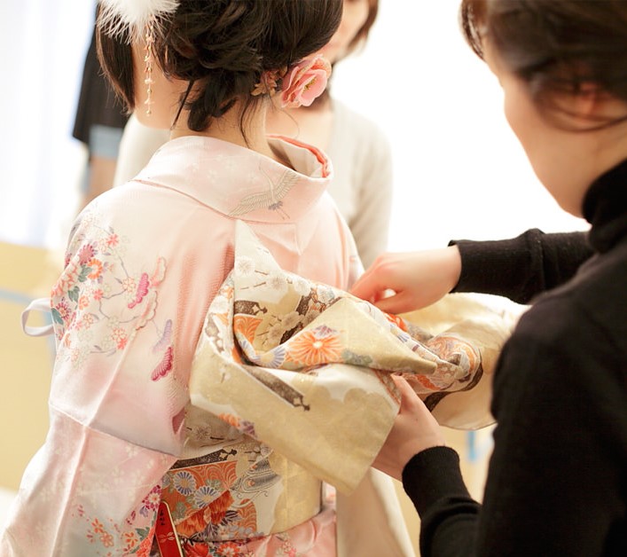 振袖、留袖、紬、浴衣など。着付けに要する時間 約30分〜40分