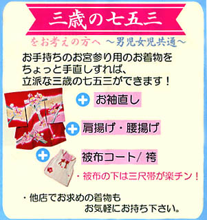 3才で実際に着るものです(男女) お宮参りの着物は「のしめ、初着、一つ身」などと呼ばれます。