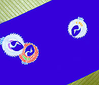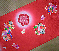 金銀糸の刺繍。 お花以外の柄は こども用では希少♪ 金色の帯がはえそう… 写真クリックで拡大 |