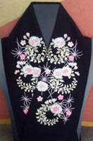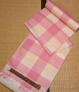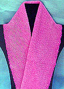 天蚕糸(tensanshi)つむぎ真綿の軽さとやわらかさ・風合いは、実際に触れてほしい素材… 驚くほど着心地が良く、体になじみます。 淡いグリーンの地が天蚕糸、僅かなオレンジは紅花で染めた糸
