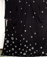 伊勢型百八選 絵羽小紋気軽な小紋の着やすさと付下げの格があって 年齢、場所に幅広く活躍しそうな着物です。 すそに行くほどデザインを大きくしています それぞれの雪輪は異なった伝統紋様(伊勢型紙) 下前に作家銘あり。写真をクリックすると拡大します