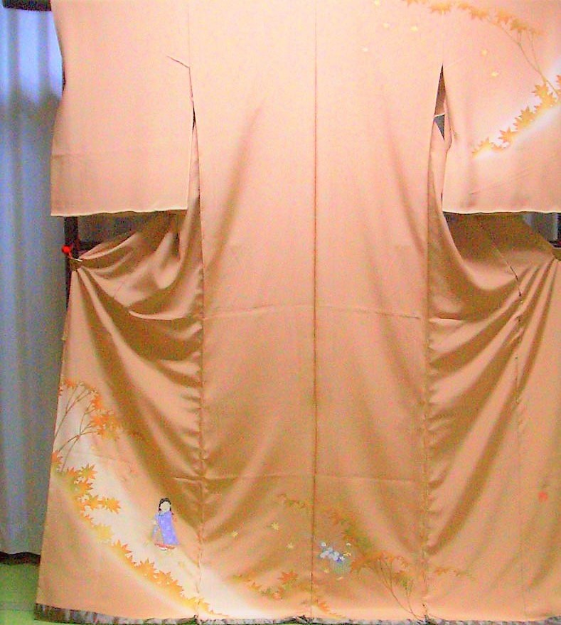 手描き訪問着やさしい表情が周囲をほっこり和ませます。 趣味性ある2枚目の贅沢な礼装着です。 落款あり(京都の作家)写真クリックで拡大します。