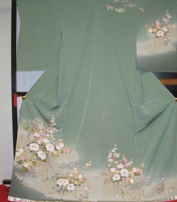 京都友禅 訪問着自信を持ってお勧めできる品質、長くご愛用頂けます 下前に作家銘(落款印)があります。(女流作家) 写真をクリックすると拡大します。