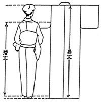 着丈の測り方は右絵の通りです。ご来店頂ければ当方にて採寸いたします。