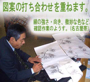 その究極の方法… あなた好みの着物を作る、そんな憧れを実現して みませんか? その道のプロである、きもの作家への依頼を承ります。 地色を選び、下絵デザイン・位置・大きさなどを考えて、 作品づくりを 楽しむ贅沢です。もちろん、製作ステップは当店がサポートします! まずは 店頭、メールにてお問い合わせ下さい。 |