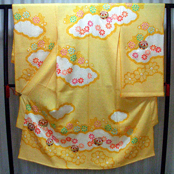 身丈は138センチ。(四つ身サイズ)揚げ調節によって7才のお祝いのほか、数年間お使いいただけます。