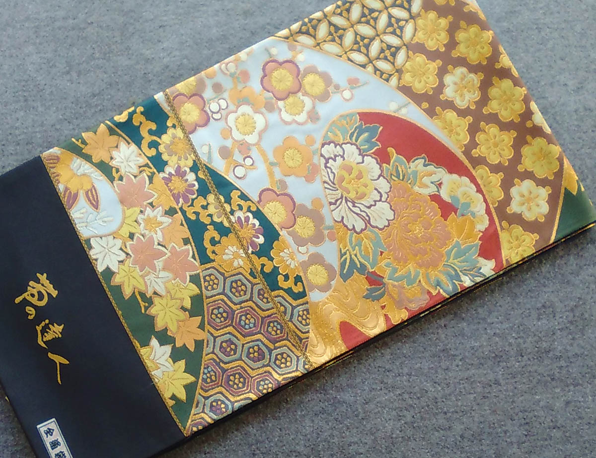 京都西陣「京芸」の袋帯。 古典的なモチーフを、くっきりと映えてみせて格式も感じさせる仕上がりです。 価格は店頭にて。全通柄の作家物です。 興味を持たれましたら、お気軽にお問い合わせ下さい。 ※お使いのパソコン画面によって写真の色が若干変わることがあります。