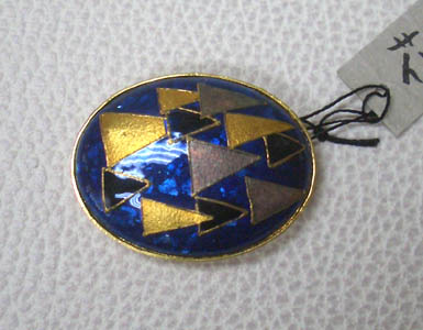 個性的な帯留めです。七宝焼きで「三つ鱗」をモダンに表現しました。3分ひも用、サイズ4×3センチ ※ご興味を持たれましたら、お気軽にお問い合わせ下さい ※お使いのモニタによって写真の色が若干変わることがあります