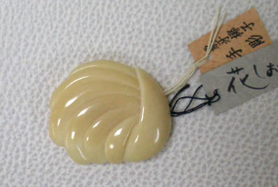 象牙椰子の帯留め。趣味の装いにさりげなくアクセントがつきます。3分ひも用、サイズ4.5×3.5センチ ※ご興味を持たれましたら、お気軽にお問い合わせ下さい ※お使いのモニタによって写真の色が若干変わることがあります
