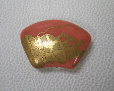 磁器に金彩を施した、レトロ感のある帯留めです。各種礼装、正装に。5分ひも用、サイズ5センチ×3.5センチ ※ご興味を持たれましたら、お気軽にお問い合わせ下さい ※お使いのモニタによって写真の色が若干変わることがあります