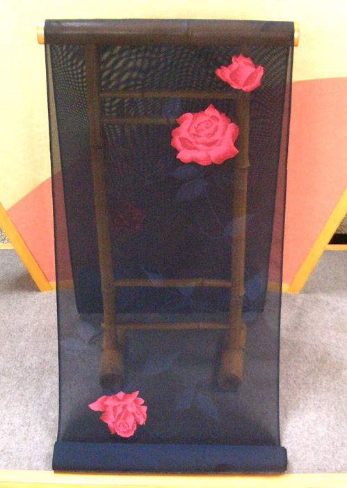 盛夏を涼しげに装う、本格派のきもの。透けるので長襦袢が必須です。黒地にバラを刺繍した印象的な 演出は趣味性があふれています。※商品詳細:絹100% 紋紗(もんしゃ)…盛夏の織りの着物。