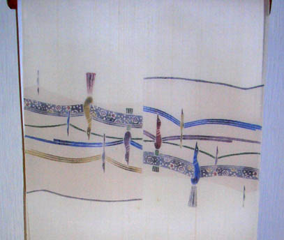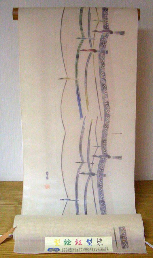 (型絵紅型染め)。デザインは雁が列をなしている様子を独特にデフォルメしています。