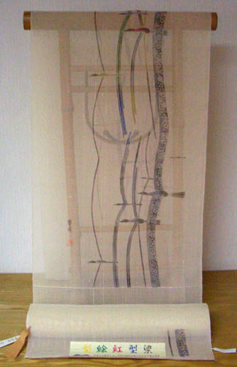 夏用9寸なごや帯 商品番号:yu−04 涼しげなオフホワイトの地色に型友禅で彩色した帯
