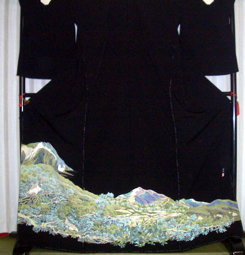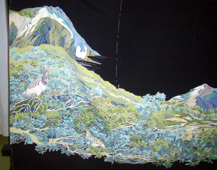 <黒留袖 逸品例> 立山の雄大な風景と雷鳥がモチーフです。 日本百名山であり、霊峰の壮大な自然を描いた黒留袖。